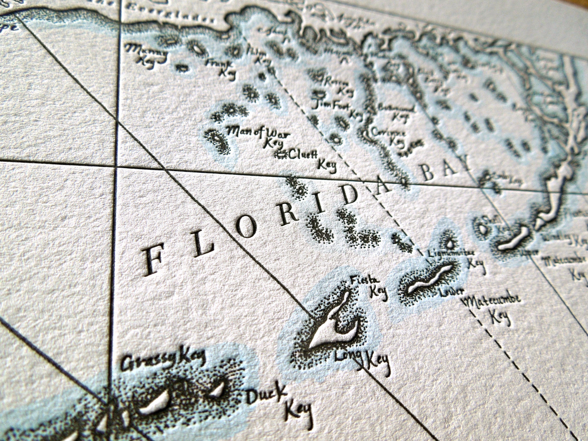 Florida Keys Reef Map Art c.1829 12 x 16, Key West Map, Key West