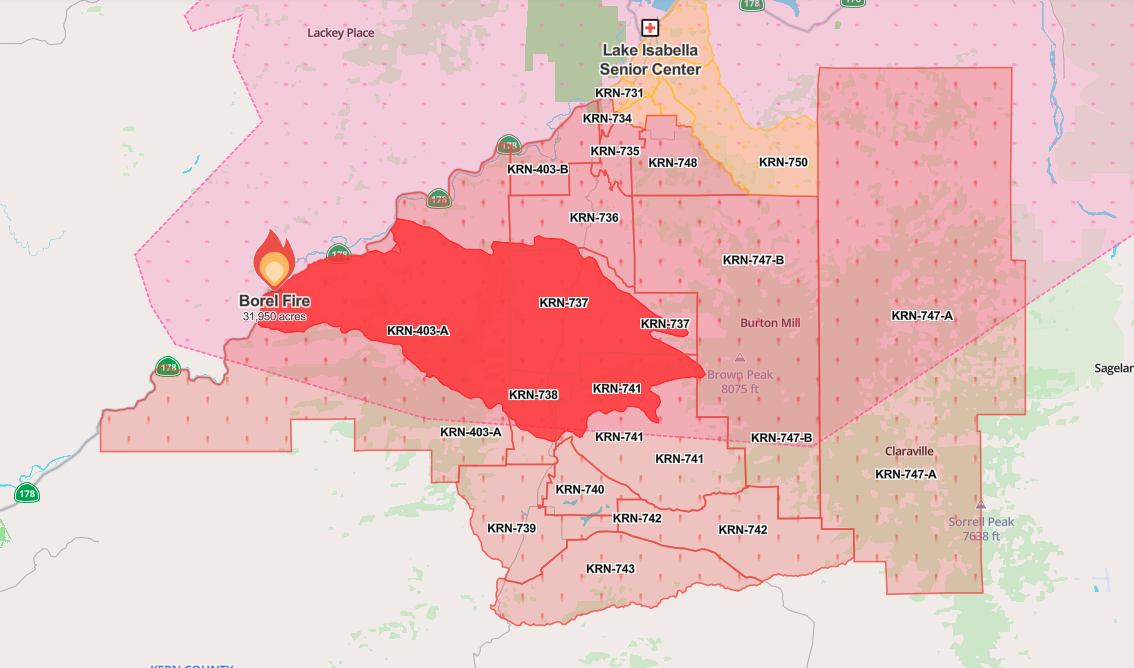 Borel Fire map: Thousands of acres burned in California wildfire
